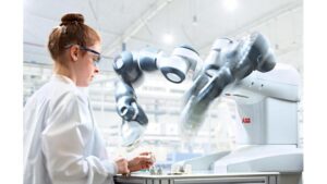 The evolution of robot precision has enabled more processes, such as microscopic assembly, to be automated. Mecademic’s Meca500, for example, has become a valuable asset for small-part automation projects. Because it’s so small and rigid compared with other industrial robots, it’s considered the most precise 6-axis robot arm in the world and can be used for a wide range of applications, including precision assembly, testing and inspection, microprecision positioning, material handling, and dispensing.